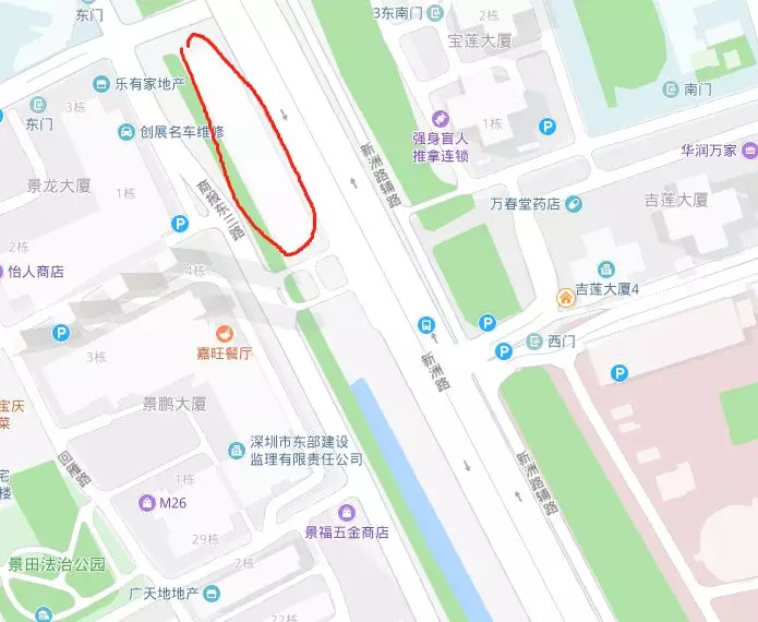 最近的公交站臺(tái)是景鵬大廈,