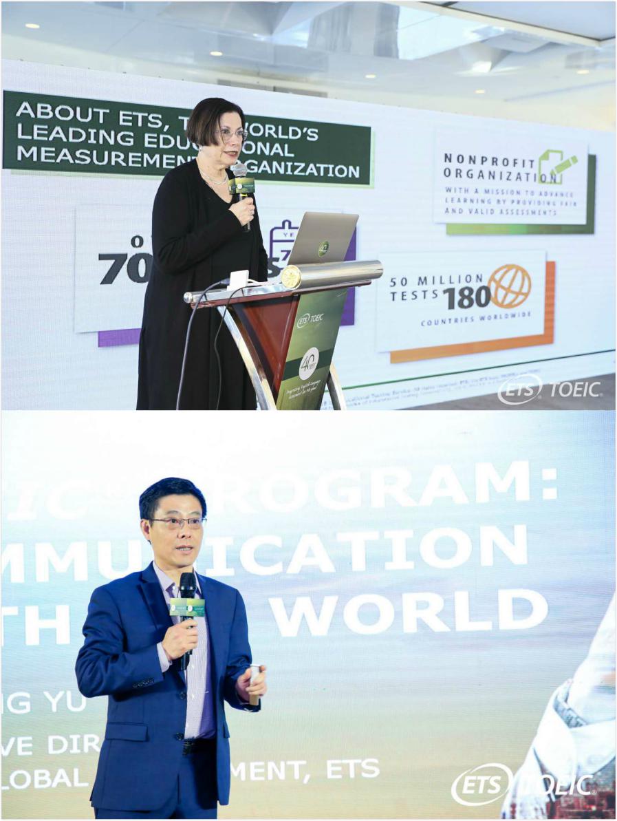 美國ETS國際部總經(jīng)理Shelly Punchatz、托業(yè)產(chǎn)品管理總監(jiān)余峰博士,代表ETS分別出席了上海站、深圳站慶典活動。在慶典活動中,兩位ETS總部高層回顧了TOEIC40年的卓越發(fā)展成就,以及助力全球多個國家及地區(qū)企業(yè)實現(xiàn)國際化發(fā)展的成功案例。他們表示,語言是架起經(jīng)濟和文化的橋梁,托業(yè)已成為全球應(yīng)用最廣泛、最具有含金量的商務(wù)和職業(yè)英語測評標(biāo)準。在國際化的商務(wù)溝通中,TOEIC越來越成為企業(yè)不可或缺的合作伙伴。