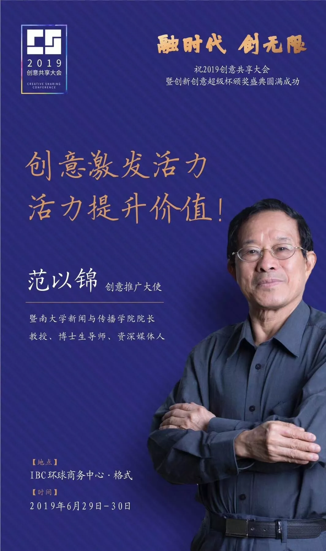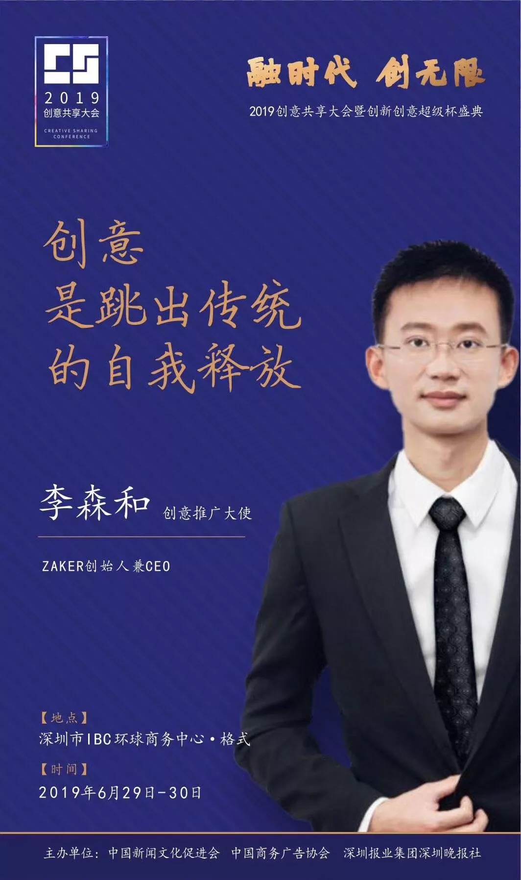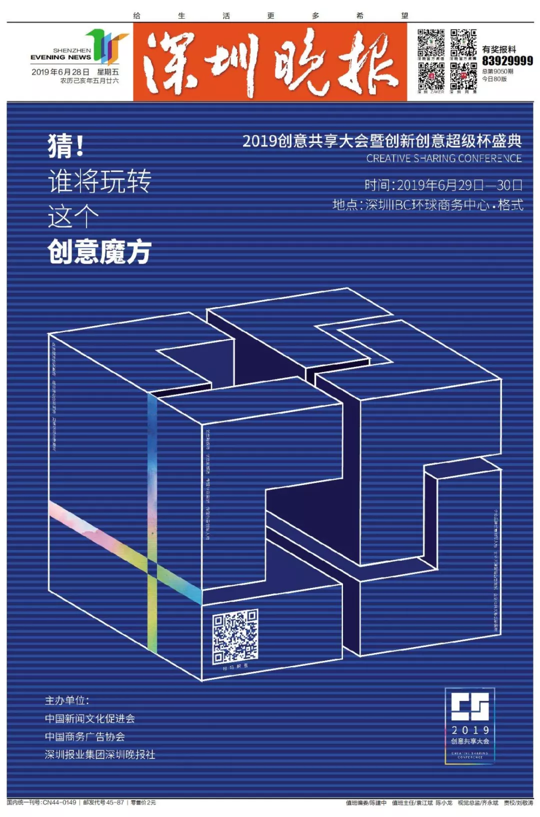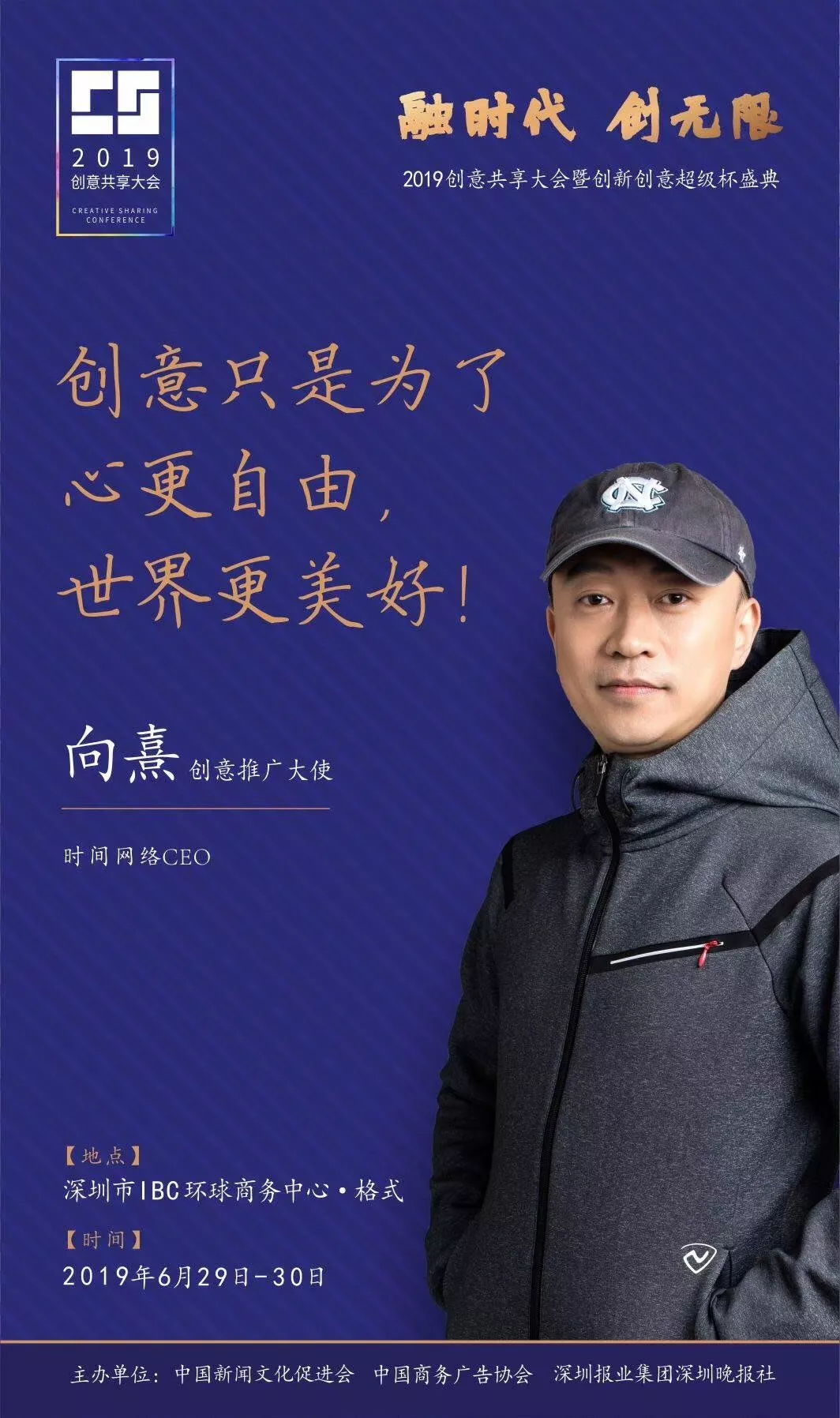 為了展現(xiàn)創(chuàng)意中國(guó)的精神風(fēng)貌和創(chuàng)意傳媒的文化力量,構(gòu)建創(chuàng)新創(chuàng)意共同體,擘畫(huà)美好圖景和未來(lái)趨勢(shì),2019年6月29日至30日,由中國(guó)新聞文化促進(jìn)會(huì)、中國(guó)商務(wù)廣告協(xié)會(huì)、深圳報(bào)業(yè)集團(tuán)深圳晚報(bào)社等聯(lián)合主辦的“融時(shí)代創(chuàng)無(wú)限——2019創(chuàng)意共享大會(huì)暨創(chuàng)新創(chuàng)意超級(jí)杯盛典”將在深圳市IBC環(huán)球商務(wù)中心隆重舉辦。