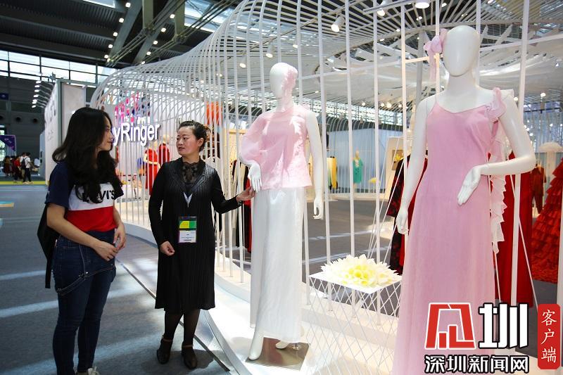 前來觀展的羅女士表示,“這個(gè)展館的服裝手感舒適,壓褶圖案比較精美,好看?!?/p>