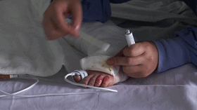 ▲由于自小就患有腦癱和癲癇疾病,至今無(wú)法正常說(shuō)話(huà),即便是輕輕的擦藥,小小也只能通過(guò)肢體的劇烈抖動(dòng),來(lái)讓人知道她的疼痛。