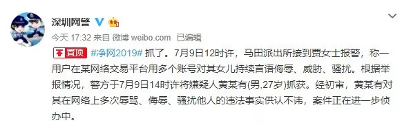 深圳公安發(fā)出警情通報(bào),7月9日下午兩點(diǎn)左右,將犯罪嫌疑人黃某有抓獲。經(jīng)初審,黃某有對(duì)其在網(wǎng)絡(luò)上多次辱罵、侮辱、騷擾他人的違法事實(shí)供認(rèn)不諱。目前,案件正在進(jìn)一步偵辦當(dāng)中。