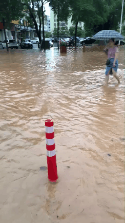 有些路段積水深度已到膝蓋。