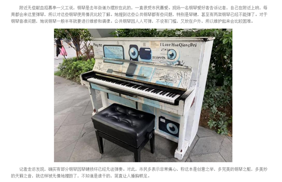 不知你們發(fā)現(xiàn)沒有,在華強(qiáng)北地鐵口以及周邊的空曠遮蔭處,擺放了8架鋼琴,市民可以免費(fèi)使用。