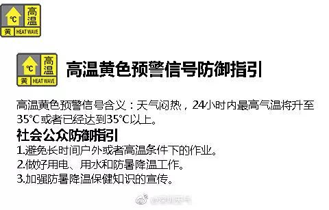 深圳市氣象臺于2019年07月15日08時(shí)在全市陸地發(fā)布高溫黃色預(yù)警,目前高溫預(yù)警信號生效中,信號可能持續(xù)3天左右,白天天氣酷熱,大家要做好防暑降溫工作,避免長時(shí)間戶外或者高溫條件下的作業(yè)。