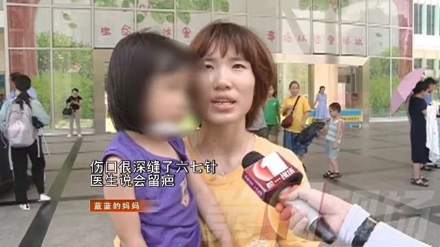 家人通過監(jiān)控了解到,當(dāng)時藍藍的媽媽正在挑選商品,藍藍和其他小朋友就在旁邊玩耍,只見她在拐彎的時候不慎撲倒,導(dǎo)致下巴受傷。