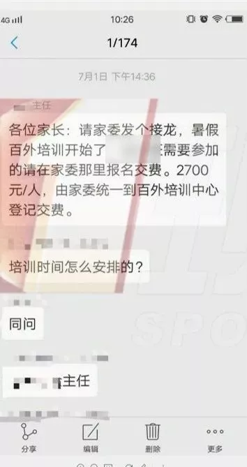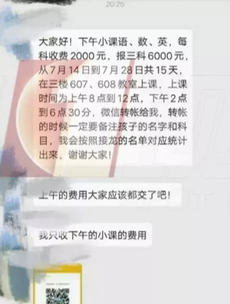 其二:老師讓家長接龍報名時并沒有說好價錢,等到報名后,卻又“獅子大開口”,開出了6000元的高價。良心難道就不會痛?