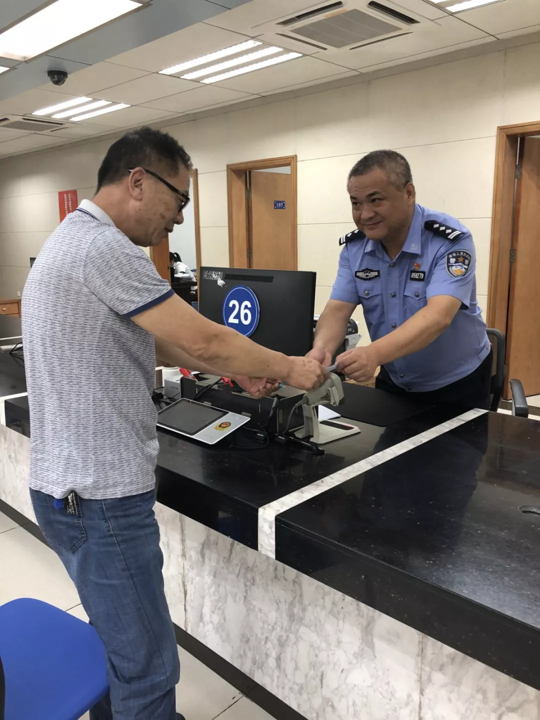 看著快急哭了的學生和家長,人口管理科民警杜朝陽立刻行動起來,啟動“綠色通道”,同時和聲細語地安慰道:“孩子別擔心,我們今天一定給你補好證件,保證不耽誤你考試!”