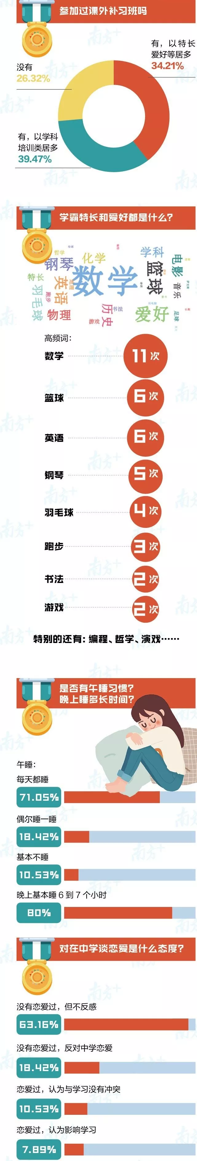 不論學(xué)習(xí)再緊張,80%的“牛娃”還是基本保證了6-7小時(shí)的晚間睡眠,還有超過70%的“牛娃”堅(jiān)持午睡,為下午的學(xué)習(xí)充充電。