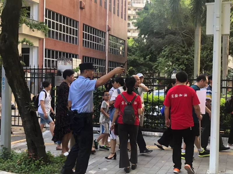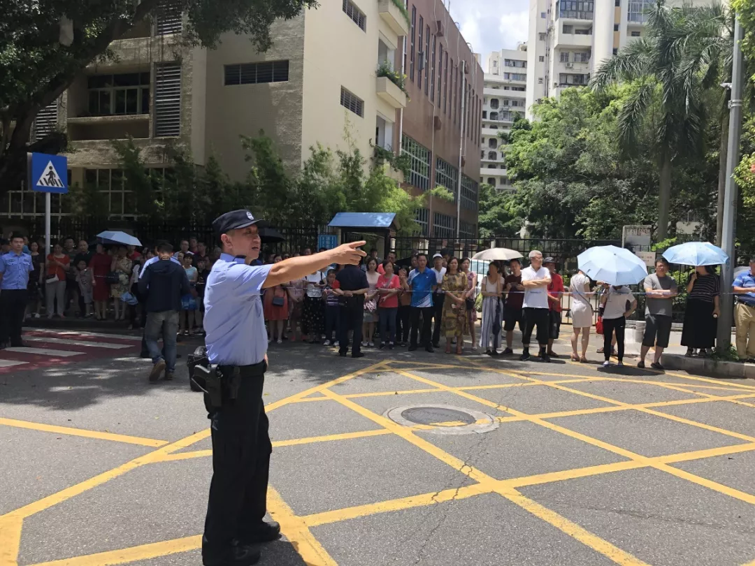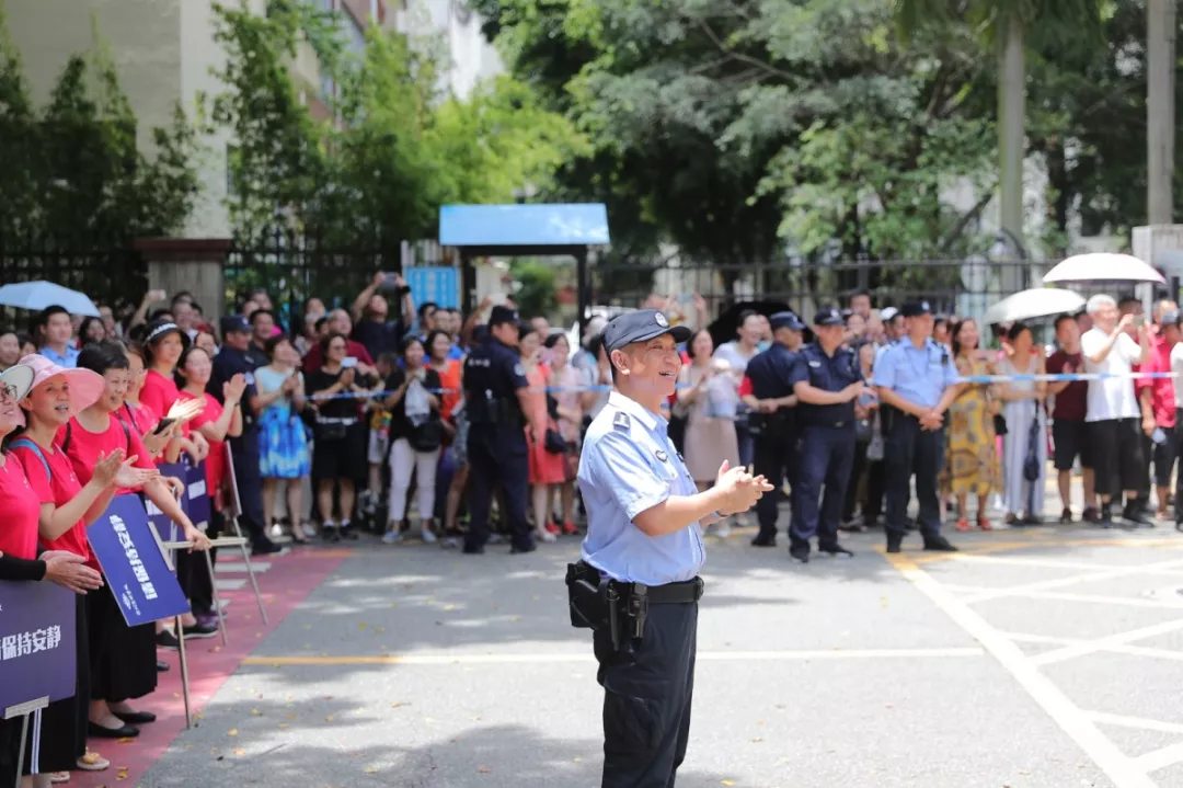 在深圳實驗中學(xué)的校門外,正在執(zhí)勤護(hù)考的通心嶺派出所所長林志強(qiáng)正跟送考的家長們“嘮嗑”。“大家都站這么久了,辛苦了!一會考試結(jié)束后,咱們來猜一猜第一個走出來的是男生還是女生?!薄拔也率悄猩??!薄拔也率桥!奔议L們一掃臉上焦急的表情,開始笑著討論起來。