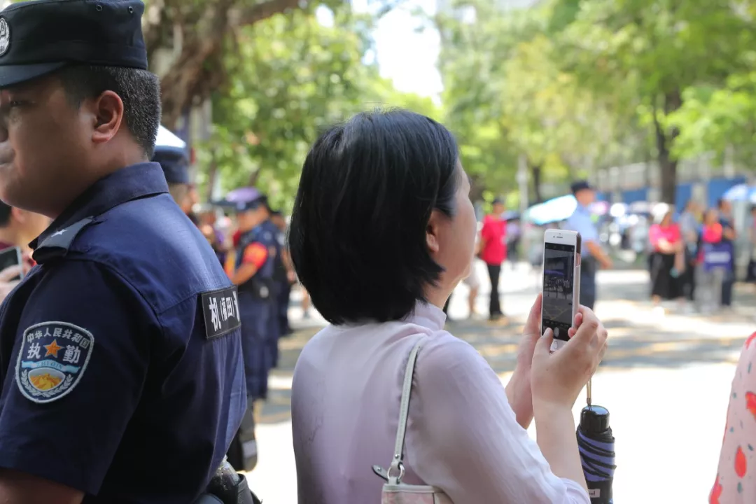 與往年不一樣,今年高考雖無風(fēng)雨,但是酷暑難耐,近500名送考家長已經(jīng)在校門外站了2個多小時了。隨著離考試結(jié)束時間越來越近,原本還平靜的人群漸漸開始騷動起來。為了緩解家長們焦慮的心情,林志強(qiáng)跟家長們建議,“一會兒學(xué)生們考完試出來咱們給他們鼓鼓掌!”“好!”林志強(qiáng)的建議立馬得到了家長們的贊同。