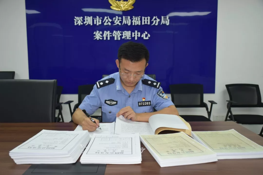 24小時值班后再繼續(xù)加班是靳鵬的工作常態(tài),他馬不停蹄地趕往出入境大隊參加會議。會議結(jié)束,靳鵬并沒有離開,而是將卷宗按順序鋪好,開始了他的工作——查看證據(jù)收集情況和提供法律支撐。150頁A4大小的卷宗裝訂成冊,足足4大本,靳鵬邊看邊拿著筆“刷刷刷”地在紙上做記錄。