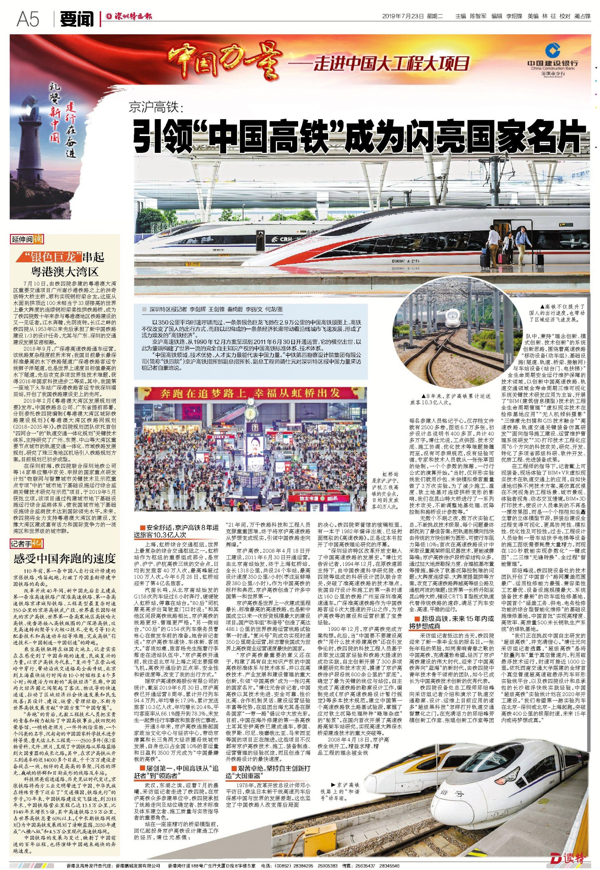 乘坐高鐵馳騁在祖國大地上,記者實實在在感受到了中國奔跑的速度,民族復興的力量。以京滬高鐵為代表,“復興號”在崇山峻嶺中穿行,帶動沿線交通格局全面升級,北京到上海最快運行時間由10小時縮短至4個多小時;構(gòu)建活力四射的“高鐵經(jīng)濟”長廊,中國兩大經(jīng)濟圈之間架起了客流、物流等的快速通道,拉動了區(qū)域經(jīng)濟社會快速發(fā)展和民生改善;其設計、建設、運營、管理經(jīng)驗,不斷為世界高鐵發(fā)展貢獻“中國方案”“中國智慧”。
