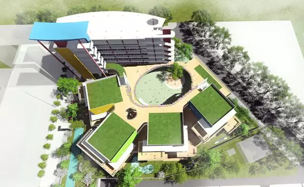 項(xiàng)目打破傳統(tǒng)整齊排列的布局方式,打造出4個(gè)與邊界呼應(yīng)的靈活體塊,在保證幼兒園首層活動(dòng)空間完整最大化的同時(shí),將新舊校舍結(jié)合,打造一個(gè)聯(lián)通式共享庭院。新建校舍為每一個(gè)班級都提供了專屬的室內(nèi)外無邊界活動(dòng)空間。除首層班級與室外活動(dòng)空間直接連通以外,二、三層班級外設(shè)有錯(cuò)落的活動(dòng)露臺及挑檐,實(shí)現(xiàn)每層均可嬉戲、游樂、探索的布局。