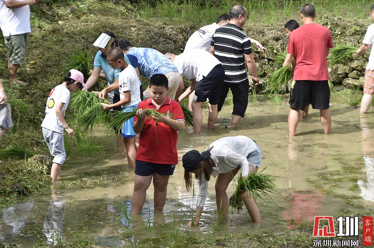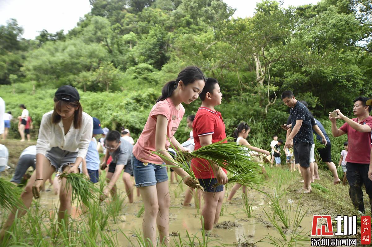 據(jù)了解,本次參加活動的青少年有100多名,他們手持秧苗,腳踩泥漿,在社區(qū)老黨員和家長的指導(dǎo)下體驗插秧農(nóng)耕作業(yè)。據(jù)南嶺村社區(qū)黨委書記張育彪介紹,在深圳高速城市化進程中,南嶺村特意保留了20畝水稻田,作為青少年的勞動教育基地?!澳康氖亲尯⒆觽儾灰泟趧尤嗣竦谋旧彼f,“通過感受勞動的艱辛,教育他們要熱愛勞動,富而思進。”