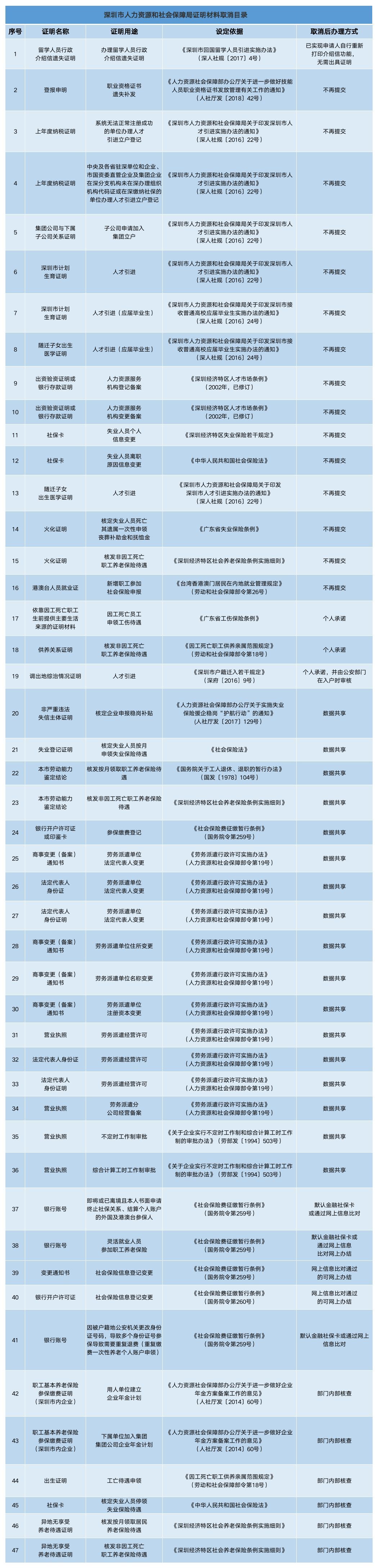 深圳新聞網(wǎng)2019年7月25日訊(見圳客戶端、深圳新聞網(wǎng)記者 施冰冰)據(jù)“深圳人社”微信公眾號消息,為了減證便民、優(yōu)化服務(wù),深圳市人力資源和社會保障局取消了47項證明材料。其中包括新增職工參加社會保險申報,港澳臺人員就業(yè)證不用再提交;人才引進(應(yīng)屆畢業(yè)生),深圳市計劃生育證明、隨遷子女出生醫(yī)學(xué)證明無需再提交;勞務(wù)派遣單位法定代表人變更,法定代表人身份證、商事變更(備案)通知書等實現(xiàn)數(shù)據(jù)共享等等等等……