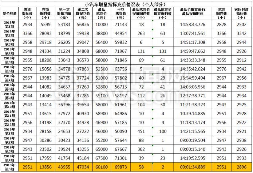 深圳市小汽車增量指標(biāo)競價(jià)情況表(2018年第一期——2019年第五期)