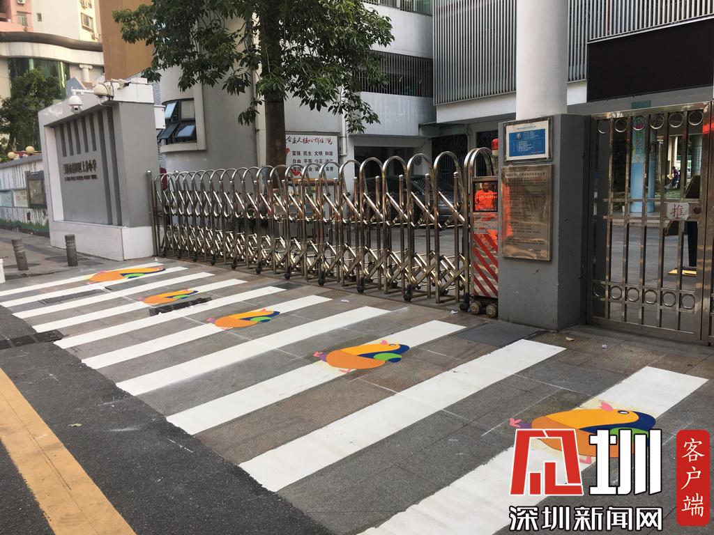 深圳試點兒童友好型交通設施,圖為彩繪有企鵝的斑馬線