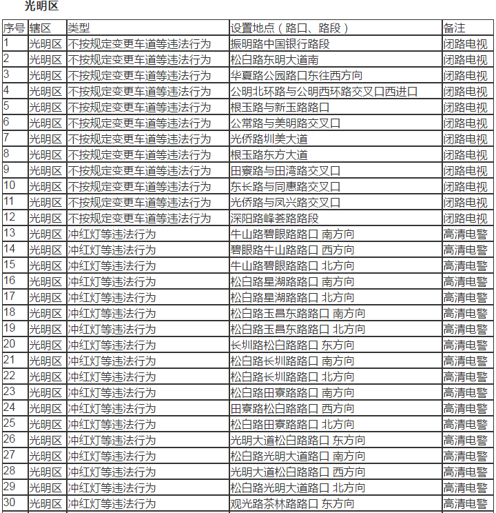 此次194套“電子警察”分布共涉及三個(gè)區(qū),分別是寶安區(qū)、光明區(qū)、龍崗區(qū)