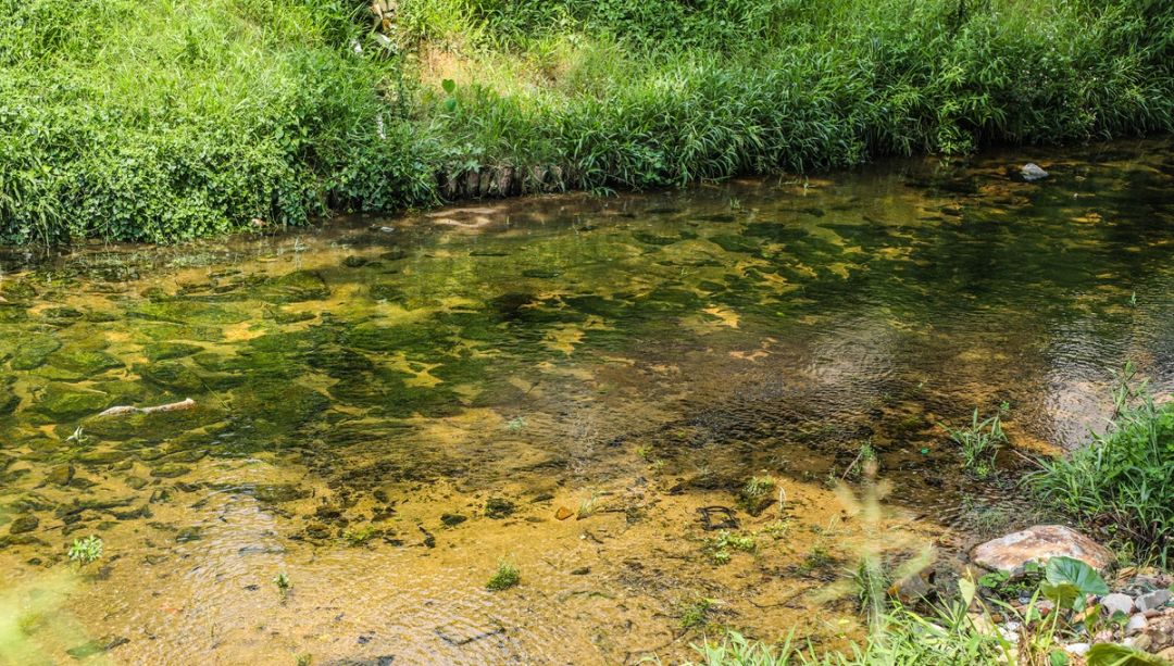 清澈干凈的流水輕撫過(guò)岸底巖石