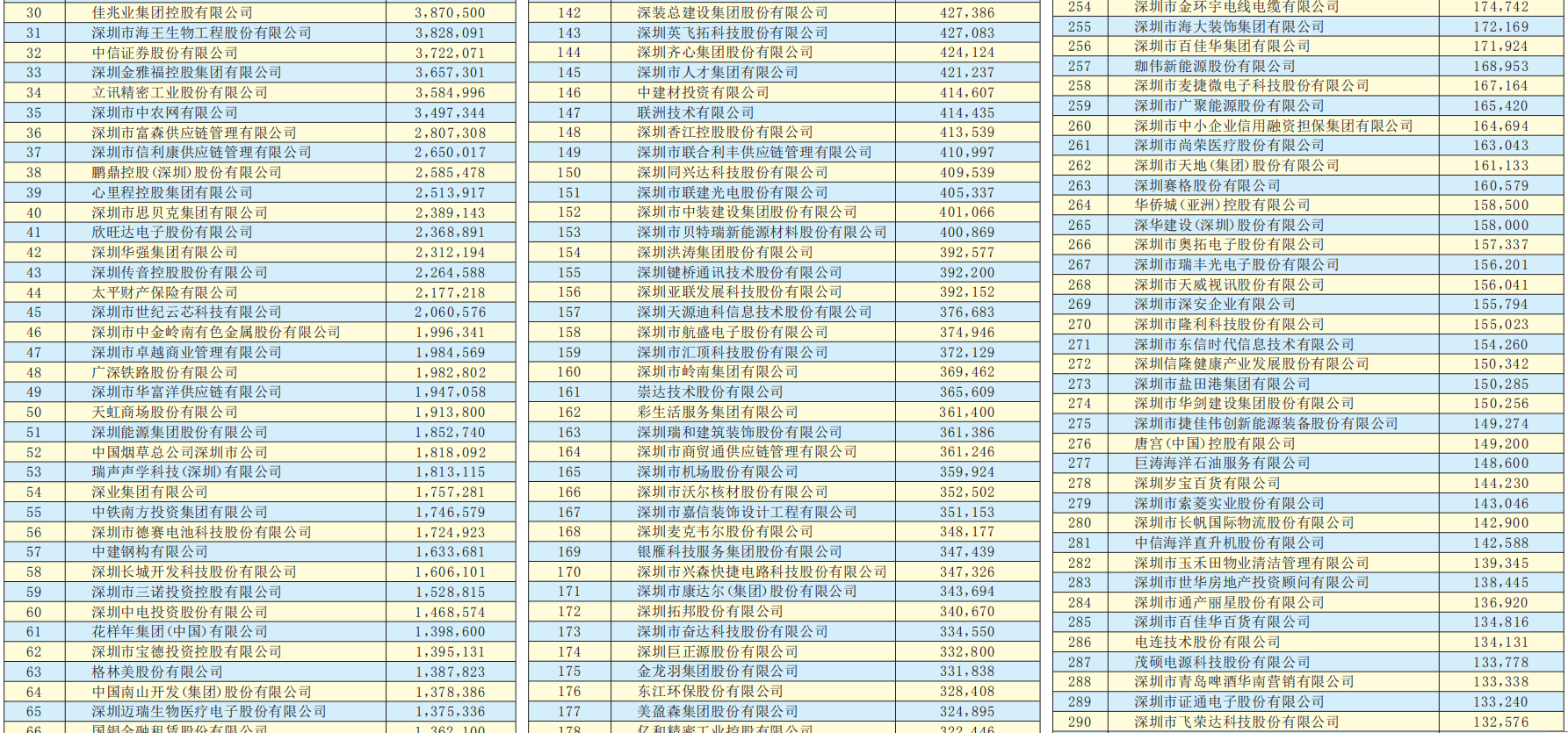 深圳商報2019年7月30日訊 由深圳市企業(yè)聯(lián)合會、深圳市企業(yè)家協(xié)會(以下簡稱深圳企聯(lián))編撰的《2019深圳500強(qiáng)企業(yè)發(fā)展報告》即將正式對外發(fā)布?!?019深圳500強(qiáng)企業(yè)發(fā)展報告》中的“2019深圳500強(qiáng)企業(yè)”名單按照營業(yè)收入排序,今日正式予以公示。
