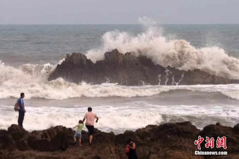 9日,浙江省溫嶺市石塘鎮(zhèn)金沙灘海邊掀起巨浪。新華社記者韓傳號攝
