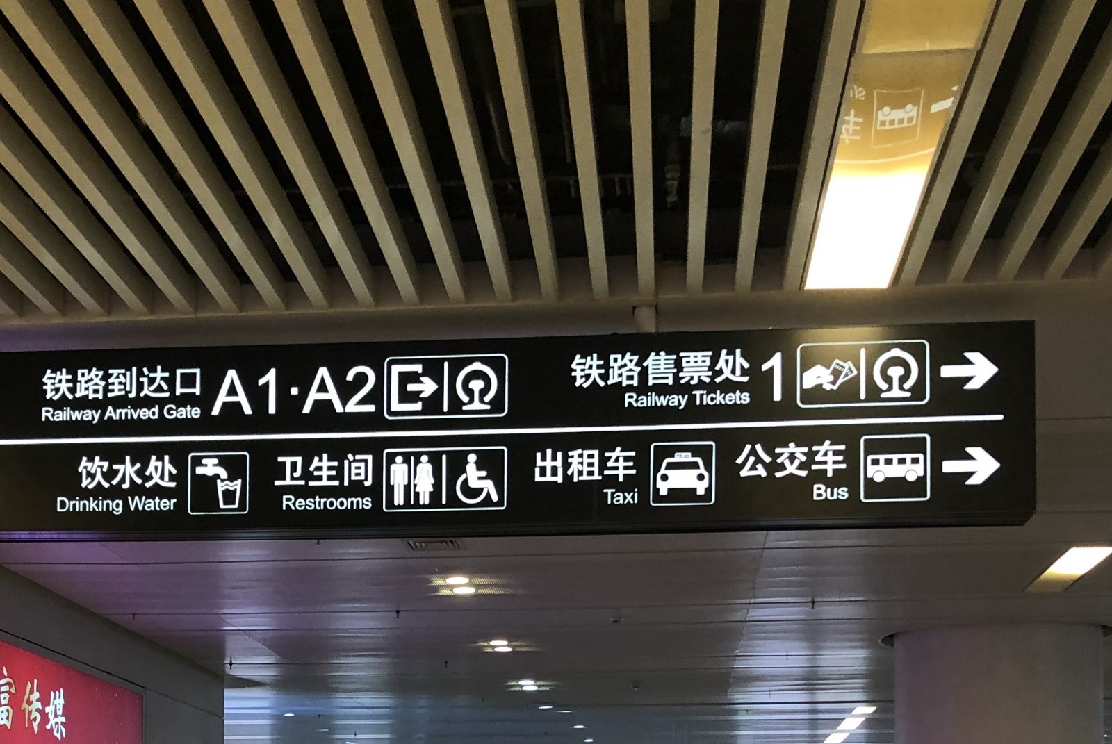 ▲同時(shí)記者留意到,在高鐵站沿路的洗手間指引標(biāo)識(shí)牌上,僅標(biāo)注了男女洗手間和殘疾人洗手間的標(biāo)識(shí),卻沒(méi)有第三方洗手間的指引標(biāo)識(shí),只有在殘疾人洗手間的門上才能看到“一家三口手拉手”的圖案標(biāo)識(shí),不方便有需要的市民“按圖索驥”。且該洗手間位置處于男洗手間入口通道內(nèi),如果女性帶孩子進(jìn)入使用,不免有些尷尬。