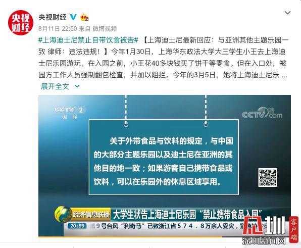 張玲說(shuō)法|上海迪士尼禁止游客自帶食物被大學(xué)生告了 中消協(xié)發(fā)話(huà)