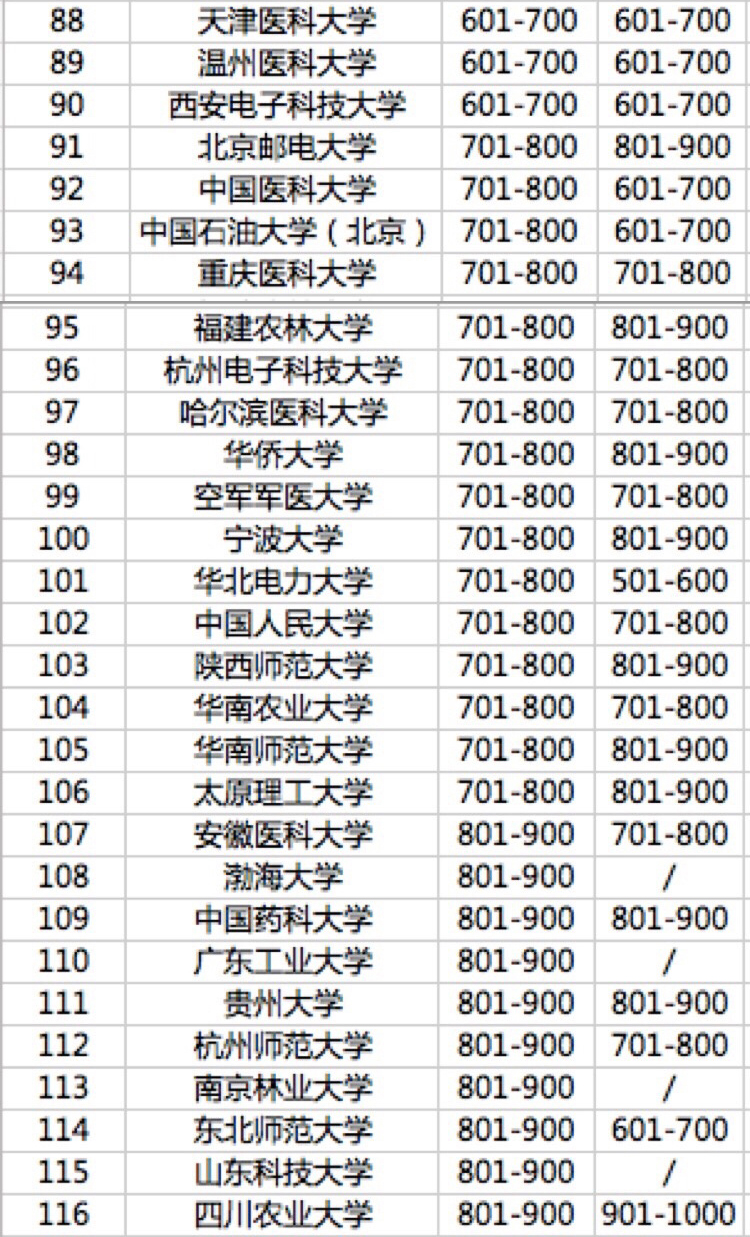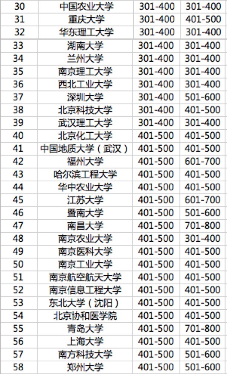 清華大學(xué)在中國內(nèi)地排名最高,位列全球第43名。上海交通大學(xué)的進步尤其引人注目,今年首次躋身全球百強,位列全球第82位,上海交通大學(xué)也成為繼清華大學(xué)、北京大學(xué)和浙江大學(xué)之后進入全球百強的第四所中國大學(xué)。復(fù)旦大學(xué)、華中科技大學(xué)、中山大學(xué)和中國科學(xué)技術(shù)大學(xué)排在全球101-150名。中南大學(xué)、蘇州大學(xué)、東南大學(xué)、電子科技大學(xué)和武漢大學(xué)首次進入世界200強。南開大學(xué)、山東大學(xué)、同濟大學(xué)首次進入世界300強。深圳大學(xué)、南方科技大學(xué)、青島大學(xué)、福州大學(xué)、鄭州大學(xué)、南昌大學(xué)、江蘇大學(xué)、暨南大學(xué)今年首次入圍全球500強。上??萍即髮W(xué)、廣東工業(yè)大學(xué)等13所大學(xué)首次進入全球1000強。