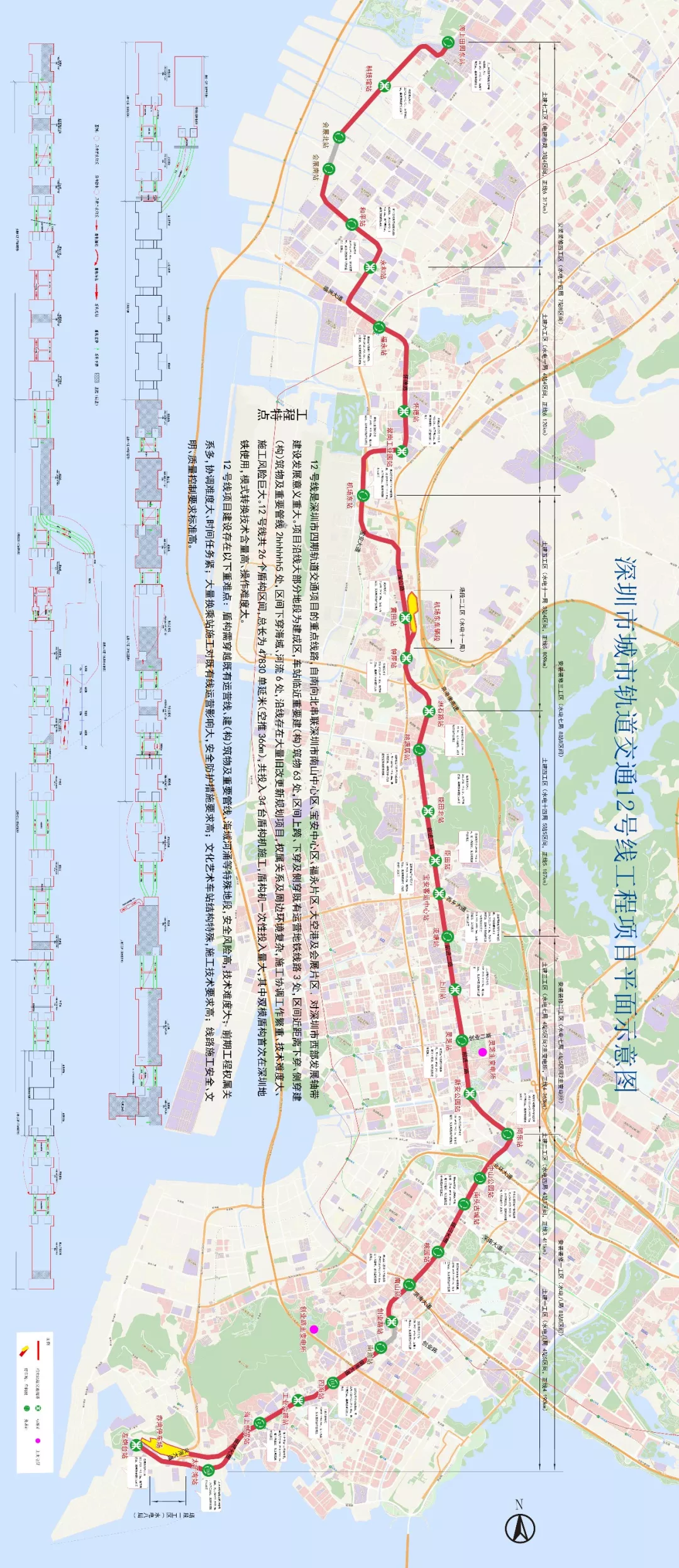 地鐵12號線起自南山區(qū)左炮臺站自南向北穿越南山中心區(qū)、寶安中心區(qū)、福永、大空港等片區(qū)后終至寶安區(qū)海上田園東站,線路全長40.56km,是進一步支撐深圳西部發(fā)展,提升前海蛇口自貿區(qū),空港新城發(fā)展品質的交通骨干線。