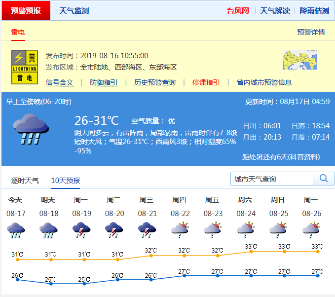 接下來,天氣將發(fā)生轉(zhuǎn)變,預(yù)計(jì)17日至19日有雷陣雨,局部可達(dá)暴雨量級,伴有雷暴和7~8級短時(shí)大風(fēng),高溫天氣將得到緩解,提醒市民做好防雷防雨防風(fēng)措施。