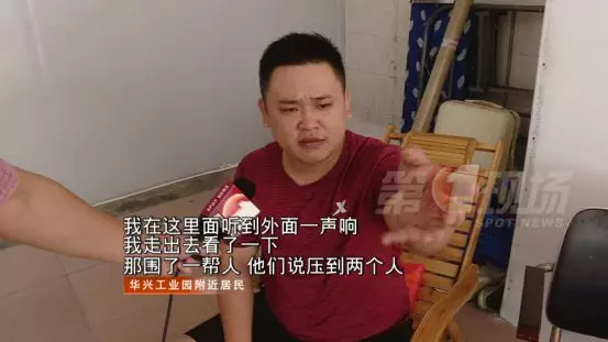 在華興工業(yè)園門口,記者看到一根2立方米左右的水泥柱子和車輛出入口的欄桿都倒伏在地面上。而在水泥柱子底下,以及旁邊的路面上,斑駁的血跡清晰可見。