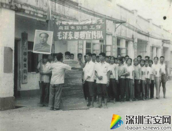 一張泛黃的老照片中,大多數(shù)人物都處在風(fēng)華正茂的年齡,赤著腳,舉著宣傳的橫幅,為血絲蟲病防治工作進(jìn)行宣傳,生動地再現(xiàn)了“赤腳醫(yī)生”年代傳染病高居不下,生活艱苦不易,缺醫(yī)少藥的場景。盡管當(dāng)時的醫(yī)療設(shè)備十分簡陋,除了一個藥箱,幾片普通的藥片,一支針筒,幾塊紗布,別的就少得可憐??稍倏嘣匐y,這些赤腳醫(yī)生們,仍是盡職盡責(zé),滿腔熱情地為人民服務(wù)。