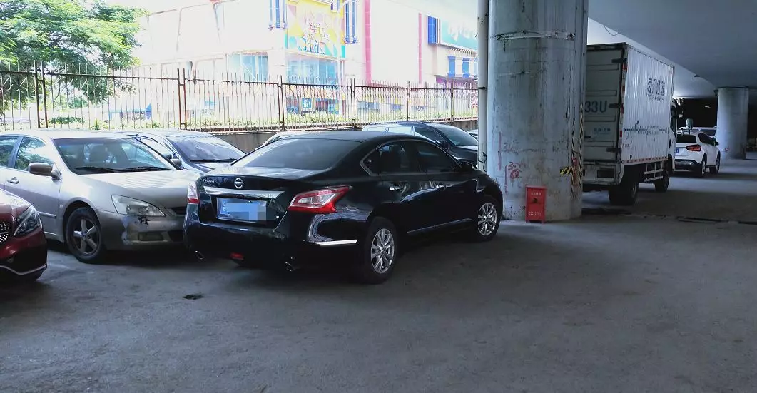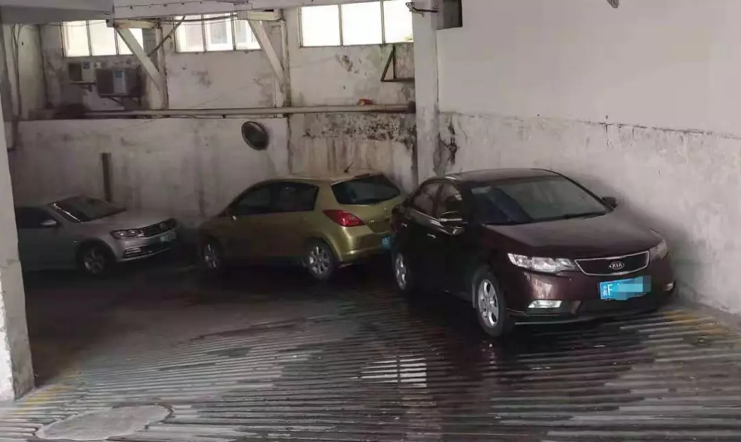 在粵鵬大廈停車場坡道處,一路都有車輛停放于此。