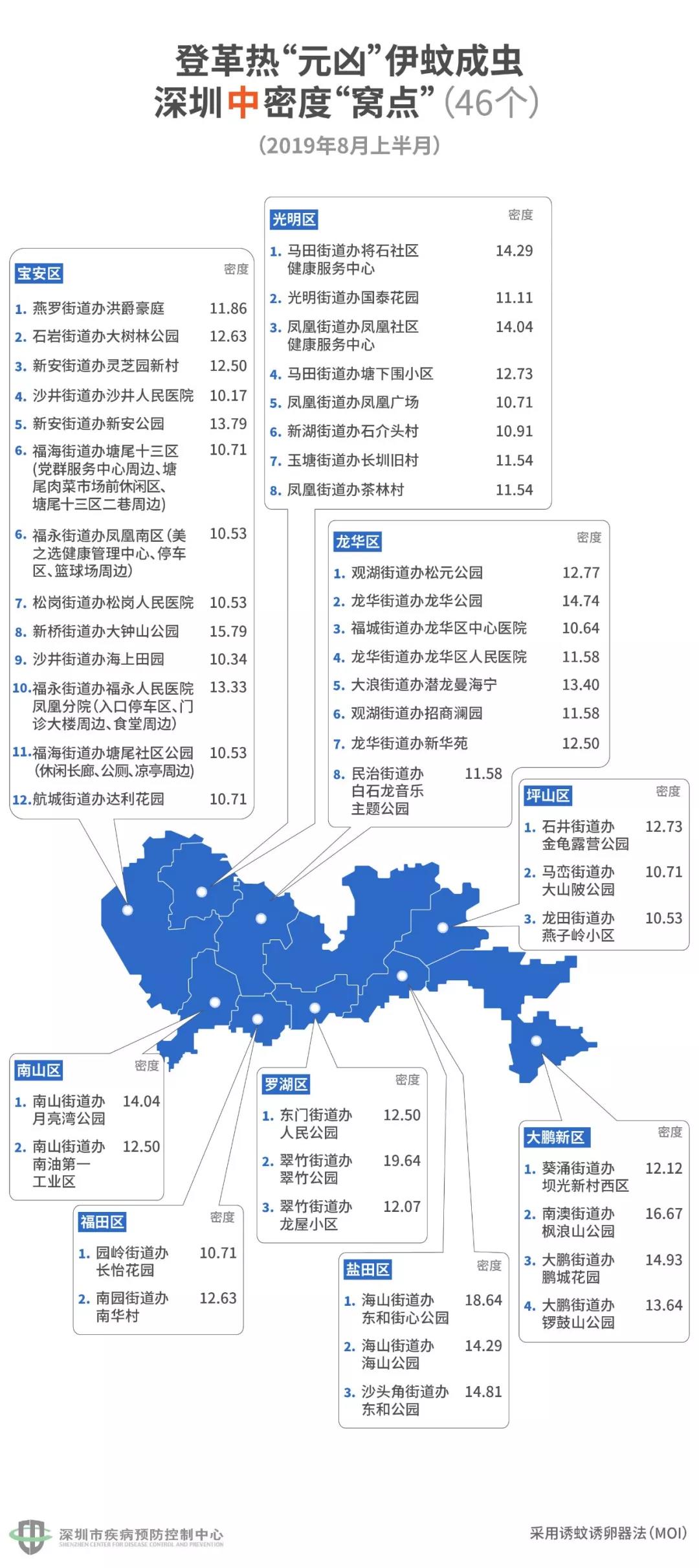 見圳客戶端·深圳新聞網(wǎng)2019年8月21日訊(見圳客戶端·深圳新聞網(wǎng)記者 劉夢(mèng)婷 通訊員 深疾控)深圳市疾控中心最新發(fā)布的登革熱指數(shù)為II級(jí)(2019年8月8日至9月4日),提示本市登革熱感染風(fēng)險(xiǎn)較高。進(jìn)入登革熱流行季節(jié),這時(shí)候我們要做的,就是趕緊看看自己周圍有哪些伊蚊窩藏的“黑點(diǎn)”!8月21日,深圳市疾控中心發(fā)布了一份最新的“蚊子窩”地圖。