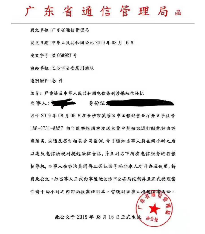 坪山坑梓轄區(qū)李女士接到一個自稱是廣東省通信管理局的電話,告知她的手機(jī)號碼涉嫌發(fā)送大量騷擾信息被人舉報,現(xiàn)由長沙市公安局立案調(diào)查。