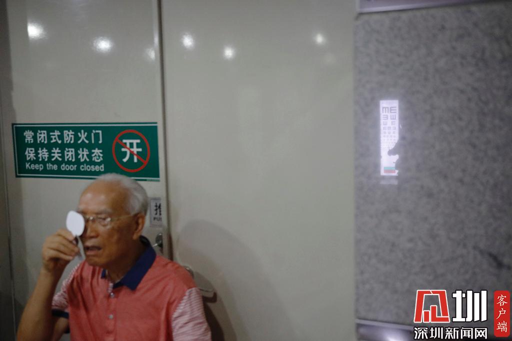 一位退休職工正在測視力