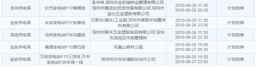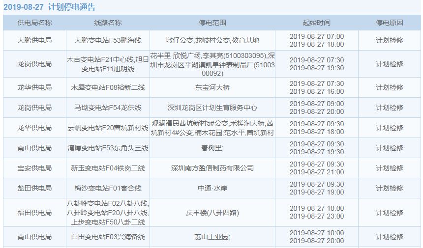 8月27日計劃停電通知: