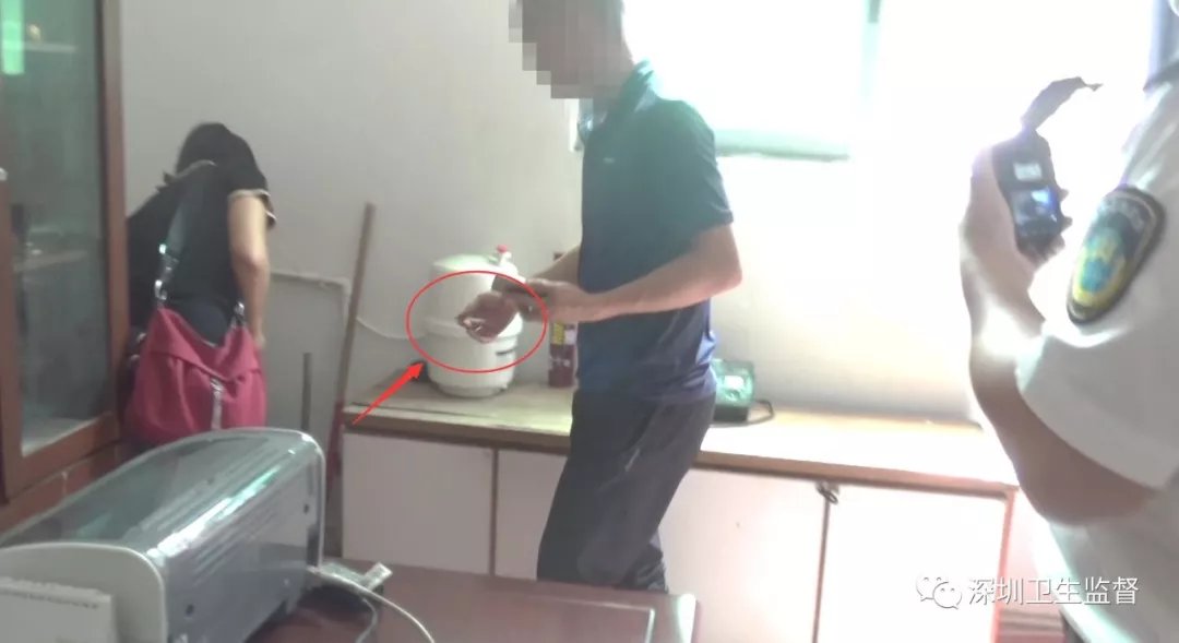 此外,執(zhí)法人員還在學(xué)校后廚門口