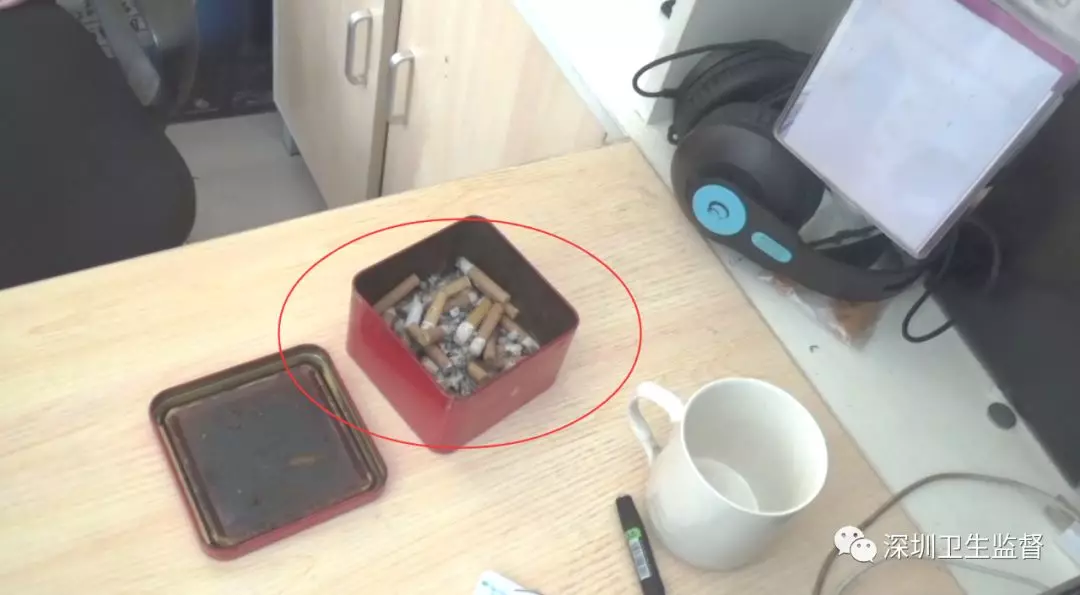 執(zhí)法人員發(fā)現(xiàn)垃圾桶內(nèi)就有兩根熄滅的煙頭