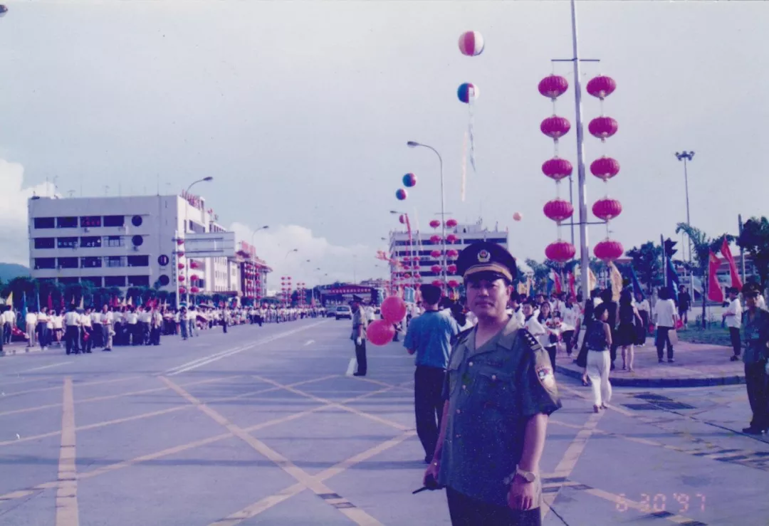 讓我們把時鐘撥回到1985年,那一年5月,皇崗口岸正式動工興建,飛檐斗拱,美輪美奐,陽光下,黃色的琉璃瓦屋頂格外搶眼,白墻紅柱,一座極具中國風的口岸一點點清晰起來。與之一并推進籌建的便是皇崗口岸派出所的前身“深圳市公安局皇崗口岸分局”。據(jù)當年皇崗口岸分局時任政委賴魯濱回憶,1986年,分局籌建組10余人只能擠在口岸附近的一個鐵皮茅棚內(nèi)開展各項籌備工作。“考慮到成立之初,日常的主要工作是維持通關(guān)貨柜車的交通秩序,所以組建時抽調(diào)的警員中,大部分來自交警隊伍?!辟圁敒I說。通過緊張有序地籌備,皇崗口岸分局于1987年正式批復(fù)予以成立。