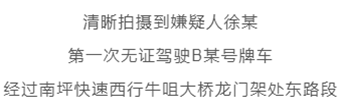 深圳交警立即展開調(diào)查,于2019年8月27日清晰拍攝到嫌疑人徐某第一次無(wú)證駕駛B某號(hào)牌車,經(jīng)過(guò)南坪快速西行牛咀大橋龍門架處東路段。