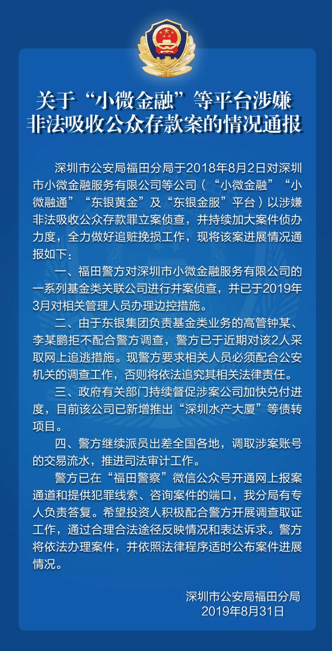 關(guān)于深圳恒富金融集團、“小微金融”等平臺的案情通報