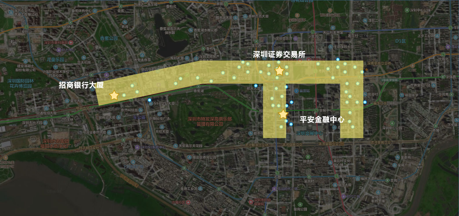 經(jīng)過多年發(fā)展,福田金融機(jī)構(gòu)分布逐漸形成了F型金融街區(qū),東起深交所,西至招商銀行大廈,沿深南路,南邊包括益田路、金田路。朱江透露,未來平安集團(tuán)還計劃在益田路打造平安金融一條街。