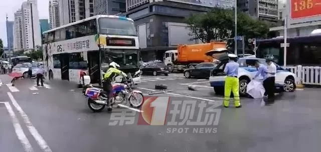 與一輛雙層大巴和一輛私家車發(fā)生碰撞