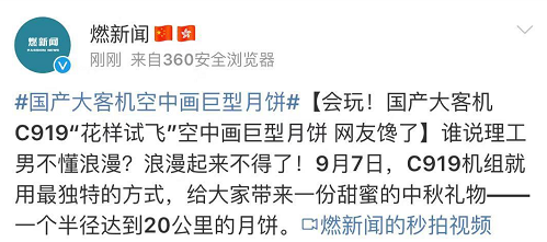 近日,C919機(jī)組在空中給大家畫(huà)了個(gè)巨型月餅