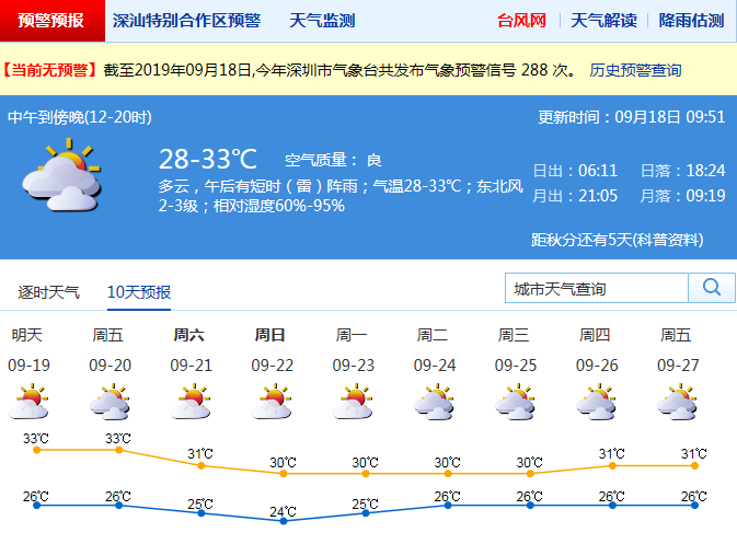 見圳客戶端·深圳新聞網(wǎng)2019年9月18日訊 你期盼的降溫就要到來了。來自氣象臺(tái)的消息,本周末21日起,北風(fēng)加大,深圳氣溫會(huì)有下降。