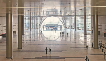 深圳國(guó)際會(huì)展中心嚴(yán)把質(zhì)量關(guān),僅3年就完工,創(chuàng)造了會(huì)展中心建設(shè)的“深圳速度”。圖為北登錄大廳。