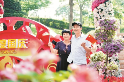 深圳晚報2019年10月04日訊 百花競艷紅旗飄,金秋鵬城節(jié)味濃。栩栩如生的“鳳凰飛羽”花帶沿著深南大道展翅欲飛;約500條城市道路上超10萬面國旗迎風招展,化身紅色海洋;蓮花山公園、筆架山公園等22家市政公園變身繽紛花?!瓏鴳c游園,滿眼蒼翠、花團錦簇、生機勃勃。深圳這座“千園之城”以熱烈、喜慶、祥和的面貌為市民帶來了歡愉和快樂。