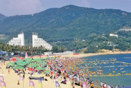 4.國慶假期前三天,小梅沙接待游客五萬余人。韋建誠攝